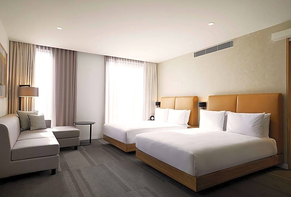 This room features sophisticated furnishings. It includes 2 queen-size beds, a sofa bed, work desk, free WiFi, walk-in shower, free standing bath and in-room safe.